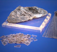 Mica is een delfstof van miljoenen jaren oud. Het wordt gevonden in blokken en hieruit worden plaatjes geschild. Vanwege de helderheid en de zeer hoge temperatuurbelastbaarheid wordt dit materiaal vooral gebruikt in ovens (kijkglazen) en vroeger in kachels. Ook als geleideplaatjes vindt het nog steeds in de elektrotechniek zijn toepassing.