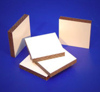 Dit materiaal bestaat uit platen, opgebouwd uit lagen kraftpapier. Deze lagen zijn geimpregneerd met thermohardende harsen. Deze platen hebben een hoge stabiliteit, stootvastheid en hittebestendigheid. Het materiaal wordt veelal toegepast in de reclameindustrie, interieur- en woningbouw. Vooral bekend onder de merknamen: Trespa, Resoplan en Print.